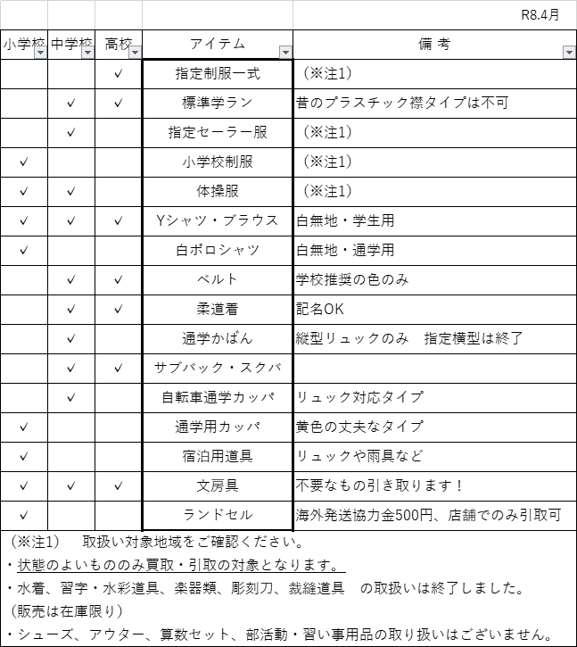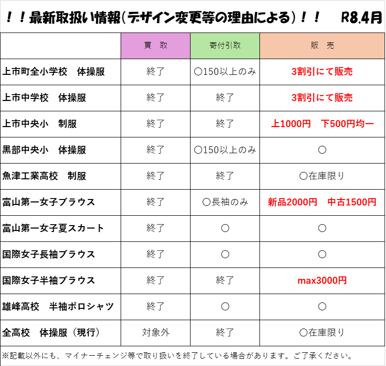 卒業された皆さまの、「捨てるには忍びない」「誰かに着てもらえたら嬉しい」というお気持ちを大切にしながら、回収BOXへご寄付くださる方との公平性にも配慮し、価格設定を行っております。